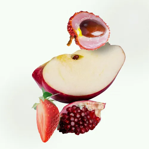 - Extrato de morango, lichia e casca de nozes