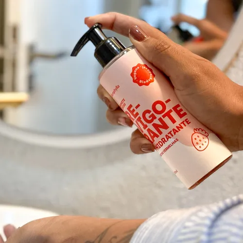 Aplique o Sabonete Líquido Corporal Frutas Vermelhas sobre a pele molhada, massageando suavemente até formar espuma. Enxágue completamente com água para finalizar a limpeza.